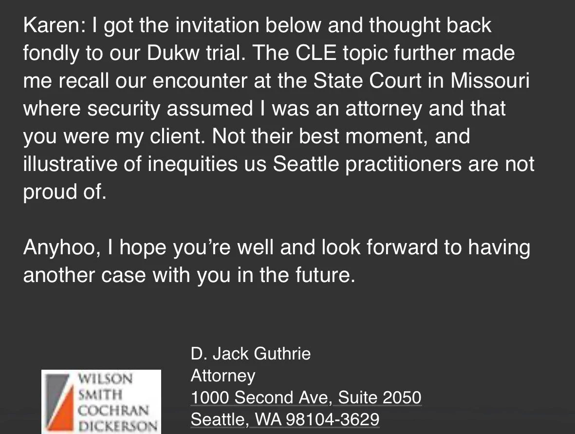 Meanwhile (coincidentally) Jack Guthrie who was a 2nd chair defense lawyer in the ride the duck case sends me a note - reminiscing about when courthouse TSA thought I was his client and wouldn’t let me bring in a cel phone.